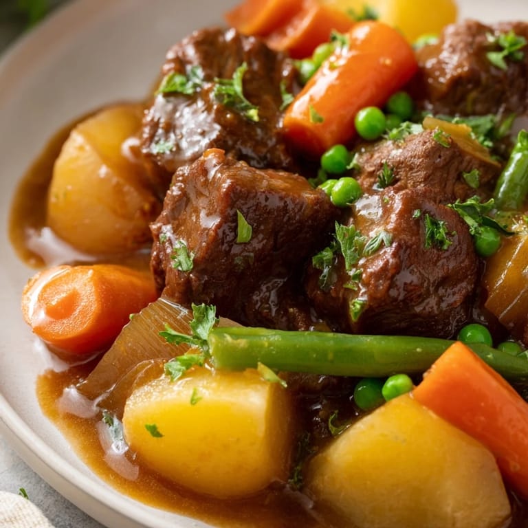 Save This beef and vegetable stew is a foolproof, flavorful meal that comes together quickly, perfect for busy days and cold nights.
