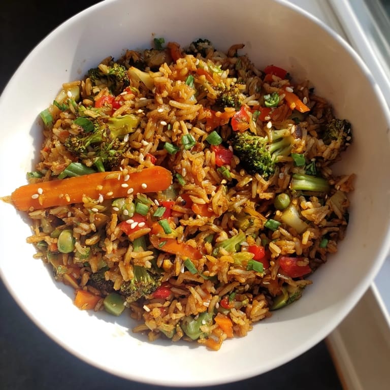 Save A vibrant, flavorful bowl featuring golden, crispy rice tossed with colorful sautéed vegetables and savory seasonings Perfect for a light yet satisfying supper