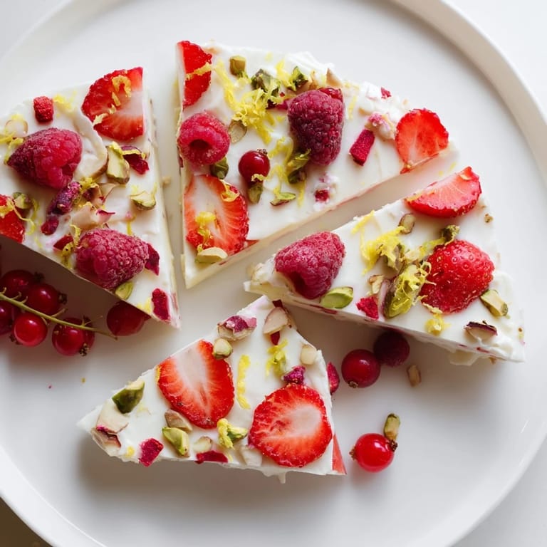 Save A refreshing, tangy-sweet frozen treat featuring creamy yogurt topped with vibrant red berries and a hint of crunch—perfect for a healthy snack or light dessert.
