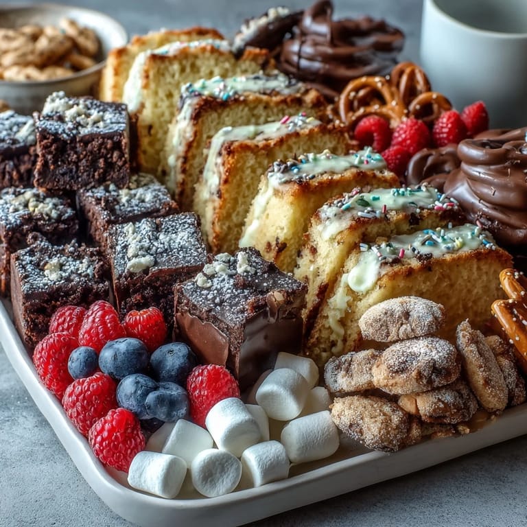 Bereite alle Komponenten im Voraus zu und stelle sicher, dass sie vollständig abgekühlt sind, bevor du sie auf dem Board arrangierst. Für besonders saubere Schnitte beim Kuchen und Brownies verwende ein scharfes Messer oder eine Streichpalette. Kleinere Schüsseln auf dem Board helfen dabei, lose Zutaten wie Beeren oder Marshmallows ordentlich zu präsentieren.