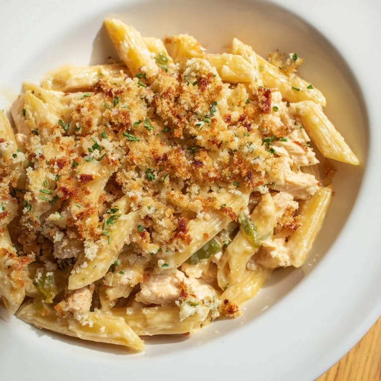 - Mix panko breadcrumbs with melted butter and grated Parmesan, then sprinkle it evenly over the pasta. This layer becomes golden and crispy in the oven.