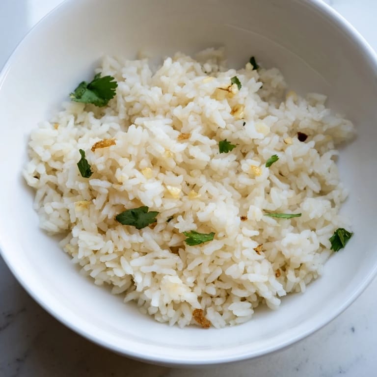 Save This jasmine rice with garlic oil has become one of those dishes I reach for when I want to cook something nourishing without fuss, proof that the simplest recipes often deserve a permanent place in your rotation. Once you've made it a handful of times, it becomes muscle memory, and there's real freedom in that.
