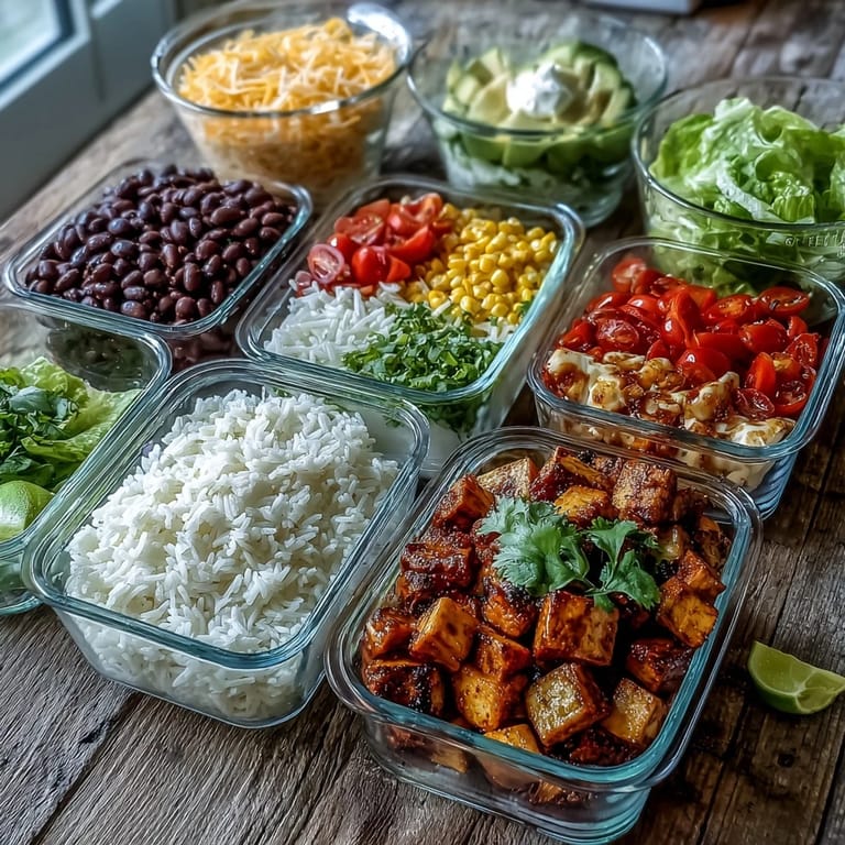 Freeze the cooked rice, seasoned beans, and protein portions for up to 3 months. Thaw overnight in the refrigerator before reheating. Fresh vegetables and toppings like lettuce, salsa, sour cream, and avocado do not freeze well—prepare these fresh when you're ready to eat.