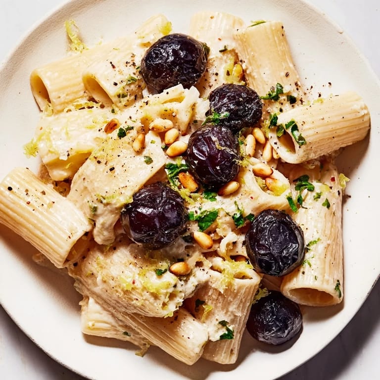 Save My neighbor handed me a bag of grapes one September afternoon, far too many to eat fresh. I tossed them on a sheet pan with olive oil and salt, not expecting much. What came out of the oven was something else entirely: jammy, caramelized little bursts of sweetness that tasted like autumn condensed into fruit. I folded them into pasta with ricotta and lemon that same night, and it became one of those meals I never wrote down but never forgot.