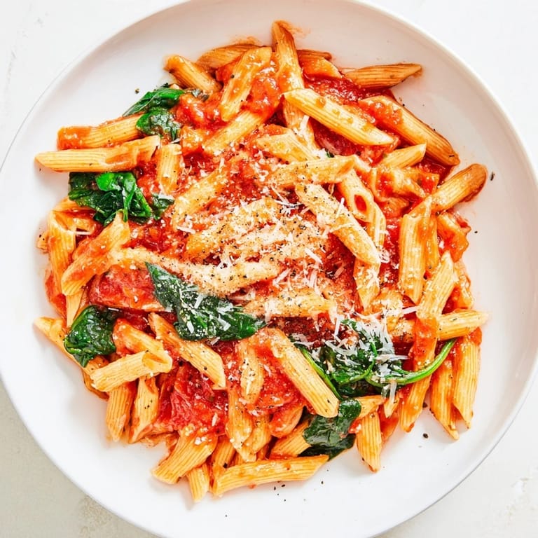 The honest truth is that this recipe works because it respects your time without compromising flavor. Every element here is doing the heavy lifting—the jarred sauce brings depth you didn't have to simmer for hours, the fresh spinach adds nutrition and complexity without extra cooking steps, and the pasta water magic makes everything taste more intentional than it has any right to be. You're not following a recipe because it's trendy; you're making something that actually tastes good and actually fits into real life.