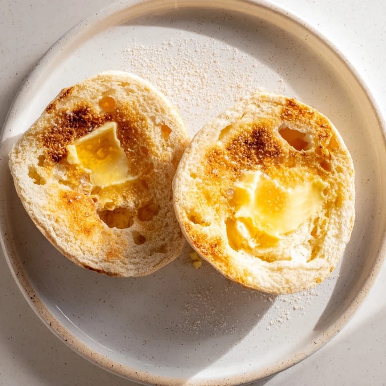 Use a fork to gently split each muffin horizontally, which helps preserve the characteristic nooks and crannies perfect for holding toppings.
