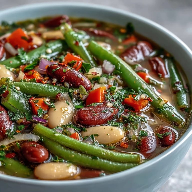 Save I was cleaning out my pantry one Saturday when I discovered an array of forgotten bean cans lurking in the back corner. The rain tapping against the window made it a perfect soup day, but I wanted something lighter than my usual hearty stews. Inspiration struck as I remembered my grandmother's three-bean salad that always appeared at summer picnics. What if those same bright, tangy flavors could transform into a warming soup? The kitchen filled with the aroma of sautéing onions and bell peppers as my experiment took shape.